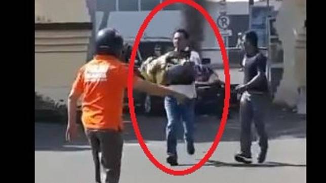 Sebuah rekaman detik-detik pasca ledakan di Mapolrestabes Surabaya beredar di dunia maya. Dalam rekaman tersebut terlihat aksi petugas yang berada di sekitar TKP menyelamatkan seorang korban ledakan.