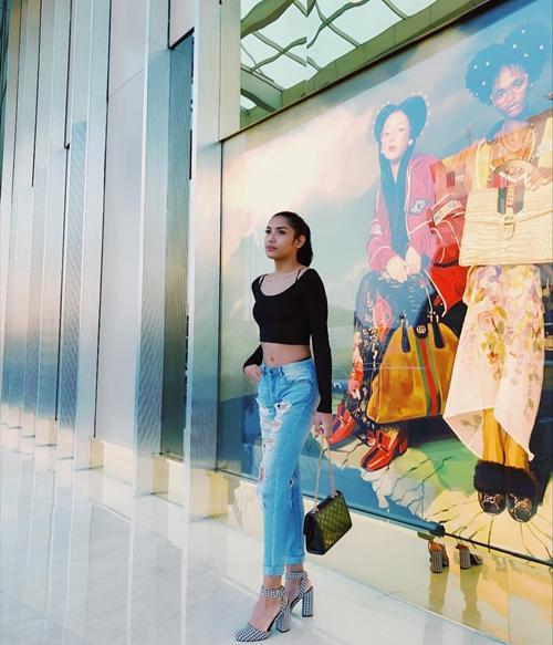 7. Jalan-jalan ke mal mengenakan crop top, ripped jeans dan high heels.