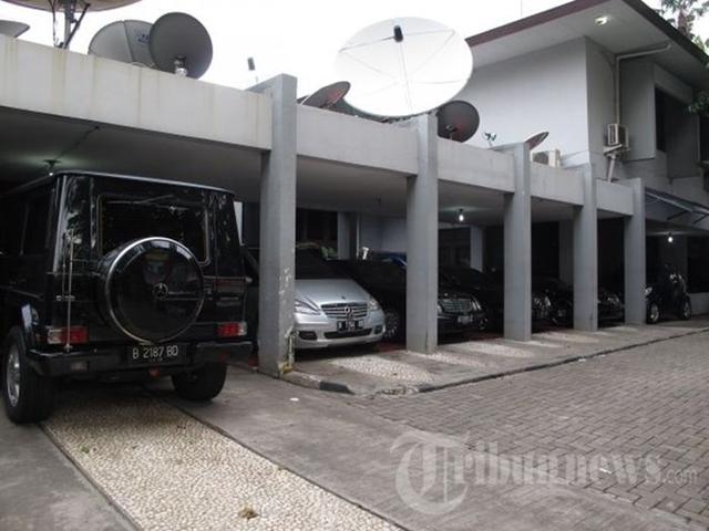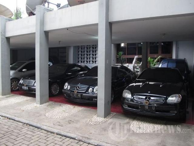 Di rumah dinas ini, jejeran mobil mewah terparkir di area garasi yang hadir dengan pilar-pilar kokoh penyanggah.