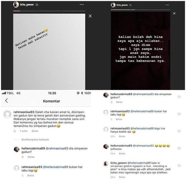"Netizen maha benar Teteh mah sabarrrr," tulisnya di InstaStory. "Kalian boleh deh hina saya apa aja silakan.. Saya diam tapi 1 jgn sampe hina anak saya, jgn main hakim sndri tampa tau kebenaran nya."